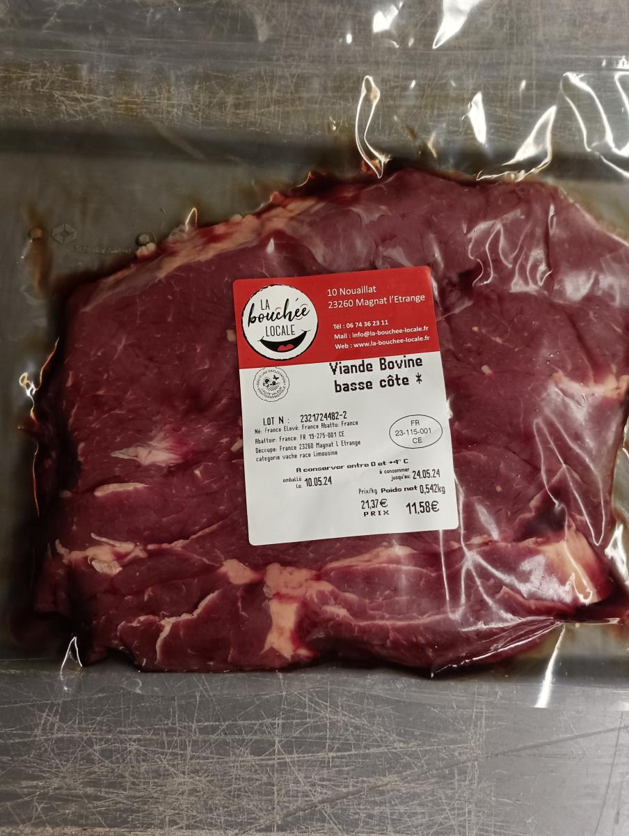 Viande (1 pièce de ± 550gr.) emballée sous vide et étiquettée.