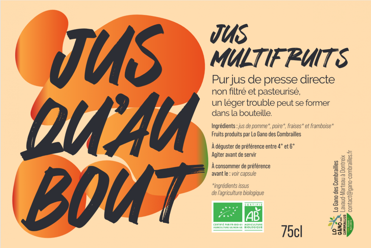 Pur jus multi-fruits, sans aucun ajout (ni sucre, ni conservateur), non filtré, pasteurisé.