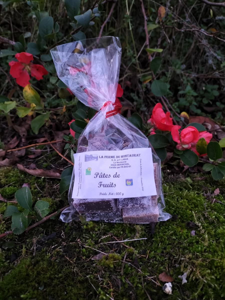Pâtes de fruits Bio de notre exploitation : Framboises, Myrtilles, Mûres, Groseilles. Sachet de 300 g (photo non contractuelle)