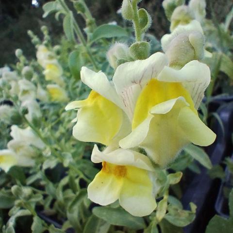 Antirrhinum majus subsp. latifolium. Plante vivace gélive de pleine lumière, lieux rocailleux. Floraison (grandes fleurs jaunes en 'gueule-de-loup') en été.